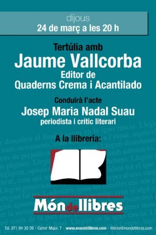 Escoltar el passat dijous Jaume Vallcorba esdevingué un acte de confirmació de tot allò que sospitàvem: el que es fa amb amor, amb bon criteri i de manera apassionada, té la recompensa del reconeixement i la perdurabilitat. De la mateixa manera, la magnífica prosòdia de Josep Maria Nadal Suau va arrodonir una tertúlia de la que aprenguérem moltes coses. Una tertúlia que, puc assegurar, va ser del gust de tots els qui poguérem gaudir-ne i participar-ne.